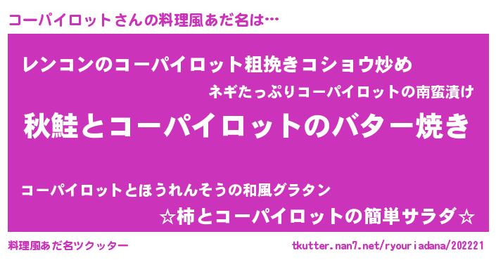 | 意味不明あだ名 | 『永久保存コーパイロット』 |