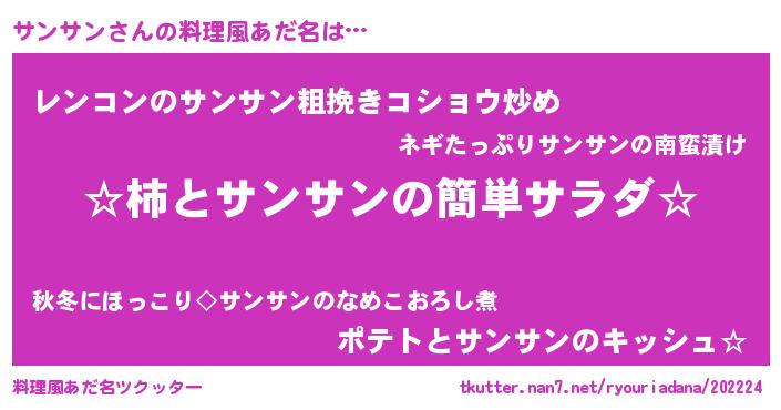 | 胡散臭い通販商品みたいなあだ名 | 『テレビで話題の高麗人参…その名も「サンサン」』 |