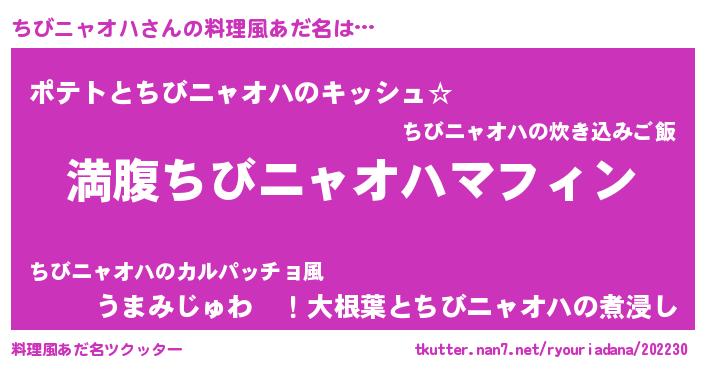 | ヒーロー風カッコイイあだ名 | 『ネオチビニャオハ』『魔戒騎士チビ』 |