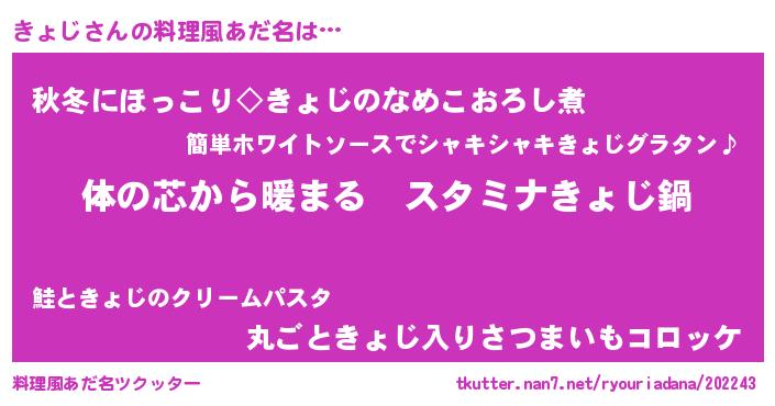 | 意味不明あだ名 | 『きょじフォーエバー』『自称きょじ』 |