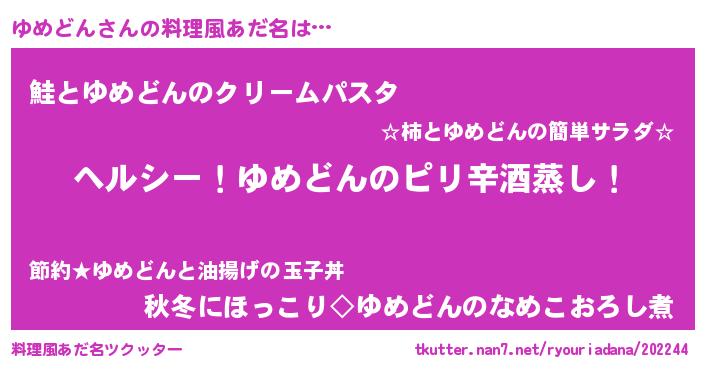 | 女子向けラノベタイトル風あだ名 | 『闇のゆめどん』『死神ゆめどんの再婚』 |