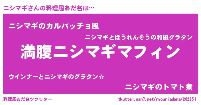 | ピコ太郎風あだ名 | 『ピコニ郎』『ニニ太郎』『ピニ六郎』 |