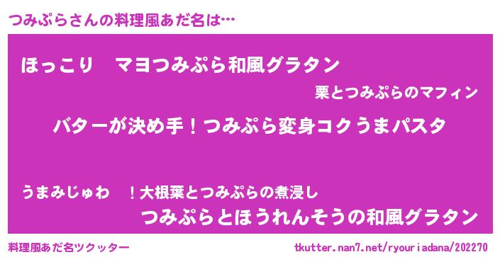 | ピコ太郎風あだ名 | 『ツツ太郎』『ピツ史郎』『ツミ八郎』 |