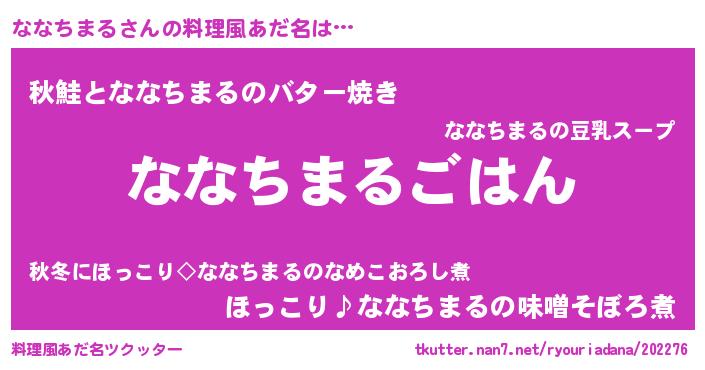 | ヘコむあだ名 | 『ななちまる(笑)』『ななふぇ~』 |