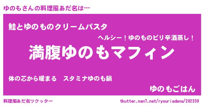 | 男性向けラノベタイトル風あだ名 | 『ゆのもという概念が存在しない退屈な世界 』 |