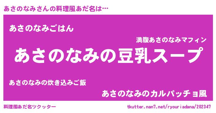 | 女子向けラノベタイトル風あだ名 | 『あさのなみは平凡を望む』 |