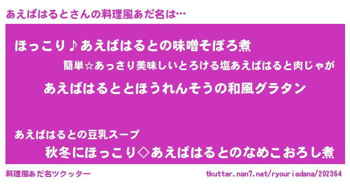 | ヘコむあだ名 | 『あえにー』『あえばはると(笑)』 |