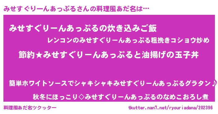 | 意味不明あだ名 | 『ペロリンみせすぐりーんあっぷる』 |
