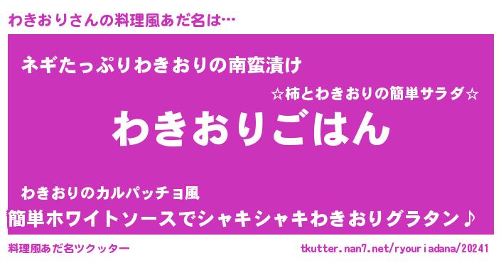| 意味不明あだ名 | 『たけのこ科わきおり属』 |