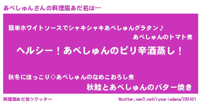 | 意味不明あだ名 | 『自称あべしゅん』『永久保存あべしゅん』 |
