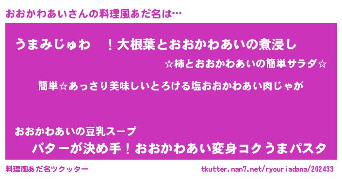 | ヘコむあだ名 | 『おおかわあい(苦笑)』『なまこ酢』 |