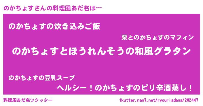 | ピコ太郎風あだ名 | 『ノカ十郎』『ノノ太郎』『ピノ太郎』 |