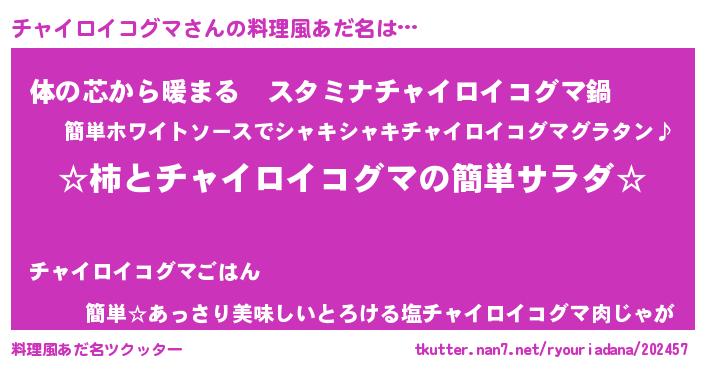 | 胡散臭い通販商品みたいなあだ名 | 『世界が平和になる高級そうな壺…その名も「チャイロイコグマ」』 |