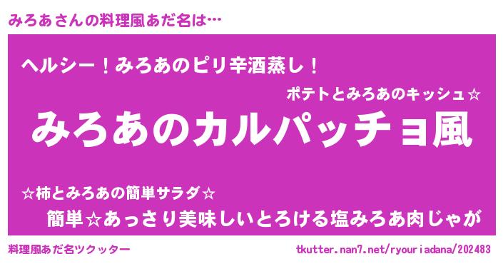 | 意味不明あだ名 | 『住所不定無職みろあ(12歳)』『自称みろあ』 |
