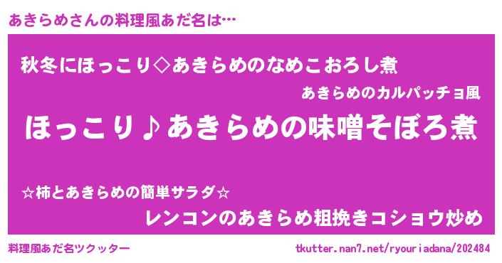 | 意味不明あだ名 | 『ペロリンあきらめ』『自称あきらめ』 |
