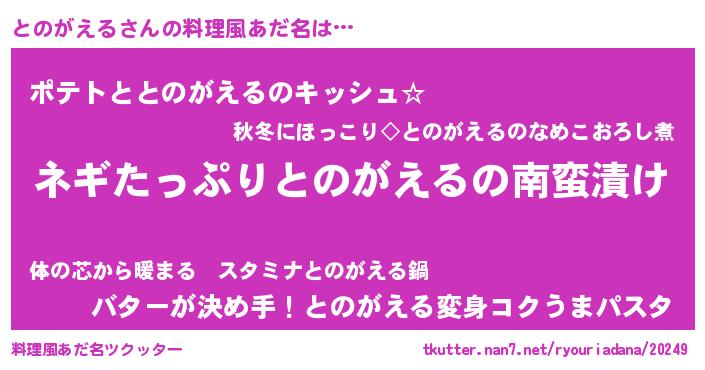 | 胡散臭い通販商品みたいなあだ名 | 『億万長者になれる水晶球…その名も「とのがえる」』 |