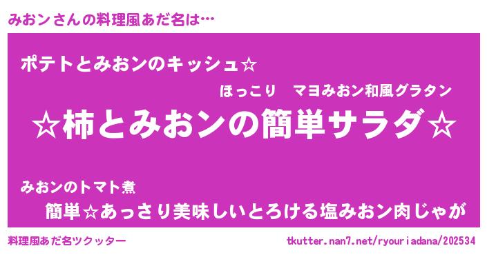 | ヘコむあだ名 | 『みお太郎』『みおン(遠い目)』 |
