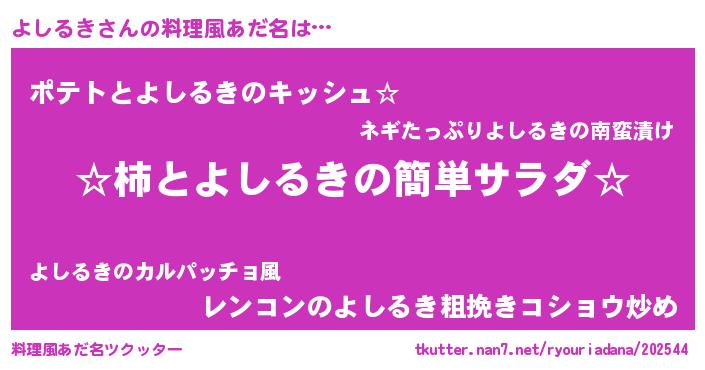 | ピコ太郎風あだ名 | 『ヨシ十郎』『ヨコ二郎』『ヨヨ太郎』 |