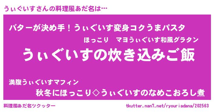 | 男性向けラノベタイトル風あだ名 | 『うちのうぃぐいすが世界を掌握している!』 |