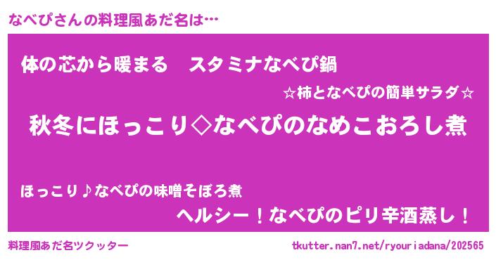 | ヒーロー風カッコイイあだ名 | 『ウルトラなべぴマン』『スーパーナベピ』 |