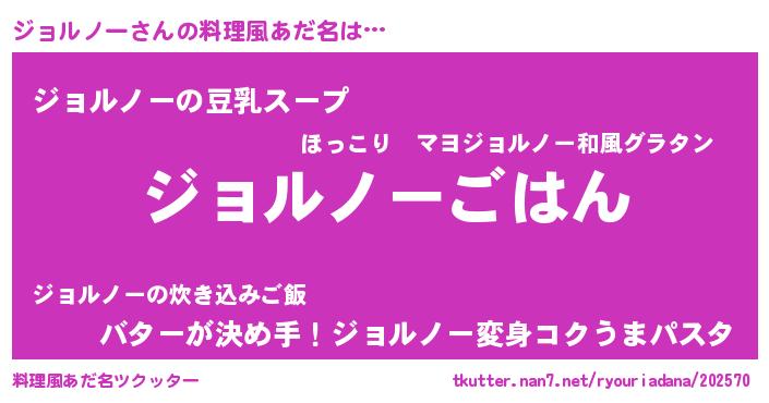 | 男性向けラノベタイトル風あだ名 | 『転生したらジョルノーだった件』 |