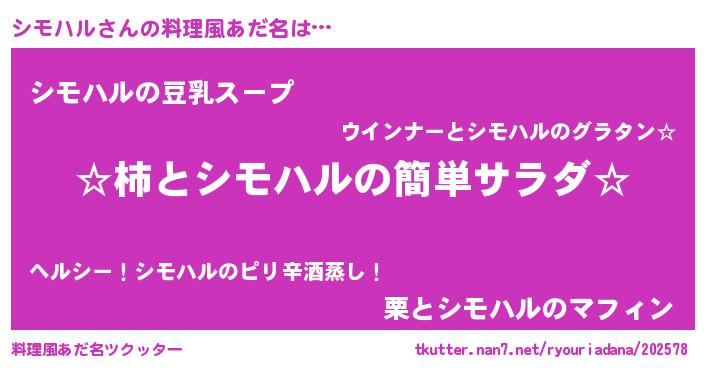 | ヒーロー風カッコイイあだ名 | 『魔戒騎士シモ』『ウルトラシモハルマン』 |