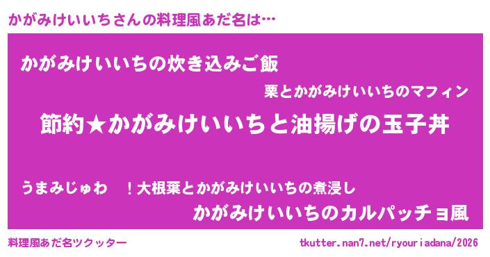 | 胡散臭い通販商品みたいなあだ名 | 『モテモテ間違いなし霊験あらたかなお札…その名も「かがみけいいち」』 |
