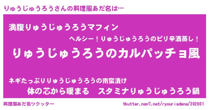 | ヘコむあだ名 | 『りゅうじゅうろう(小並感)』『つくし』 |
