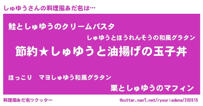 | 男性向けラノベタイトル風あだ名 | 『シュユウアートオンライン』 |