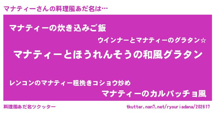 | ヒーロー風カッコイイあだ名 | 『仮面マナダー』『ネオマナティー』 |