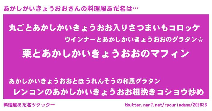 | 恥ずかしいあだ名 | 『アカシカイキョウオオデラックス』 |