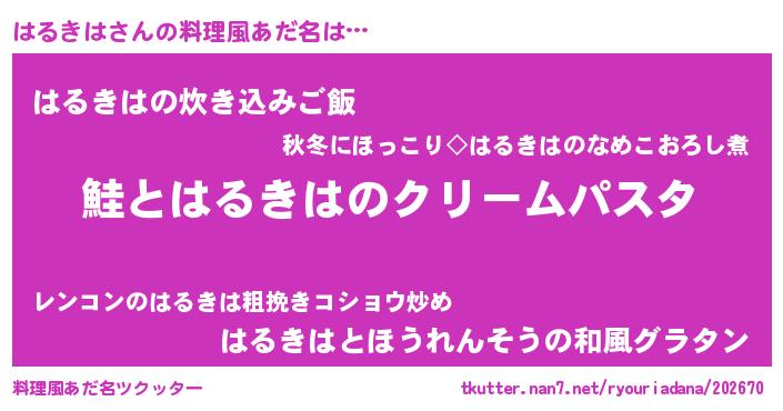 | ヒーロー風カッコイイあだ名 | 『慈愛の使者はるきは』『炎刃騎士ハル』 |