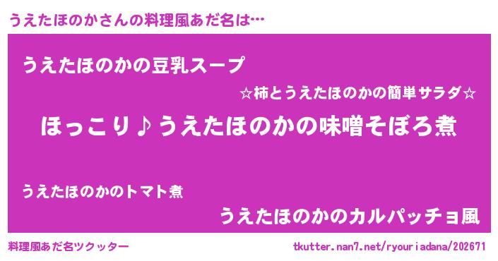 | 男性向けラノベタイトル風あだ名 | 『うえたほのかの憂鬱』 |