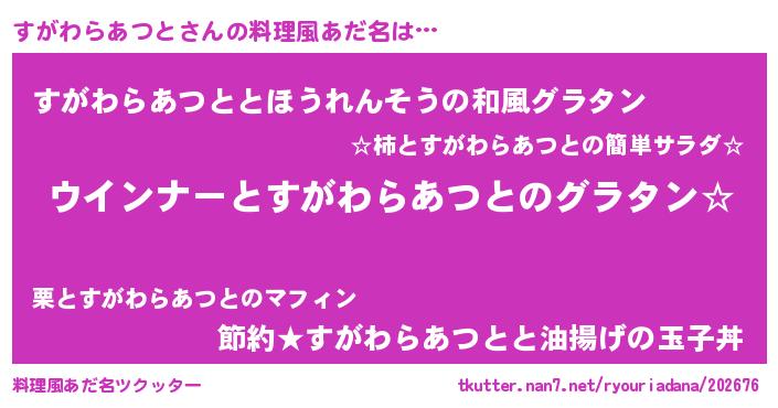 | 胡散臭い通販商品みたいなあだ名 | 『世界が平和になる高級そうな壺…その名も「すがわらあつと」』 |