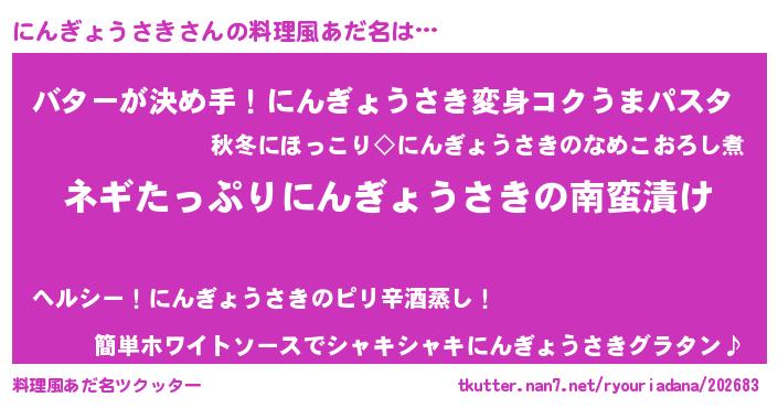 | ヘコむあだ名 | 『にんにゅー』『にん太郎』 |
