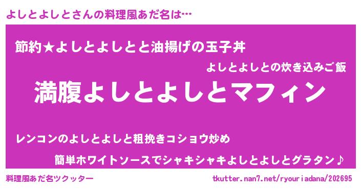 | 胡散臭い通販商品みたいなあだ名 | 『絶対に幸福をもたらす水素水…その名も「よしとよしと」』 |