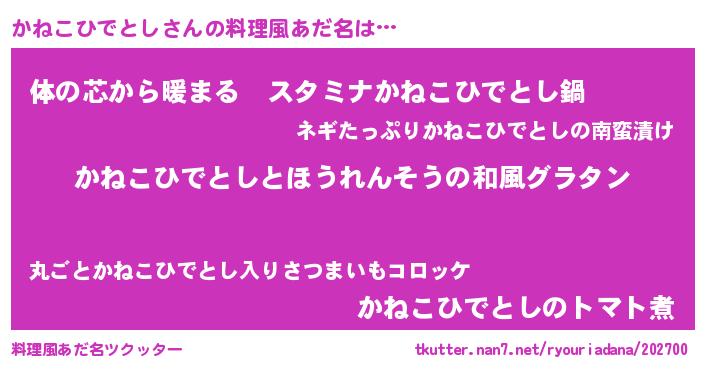 | 女子向けラノベタイトル風あだ名 | 『かねこひでとしの玉の輿計画!』 |