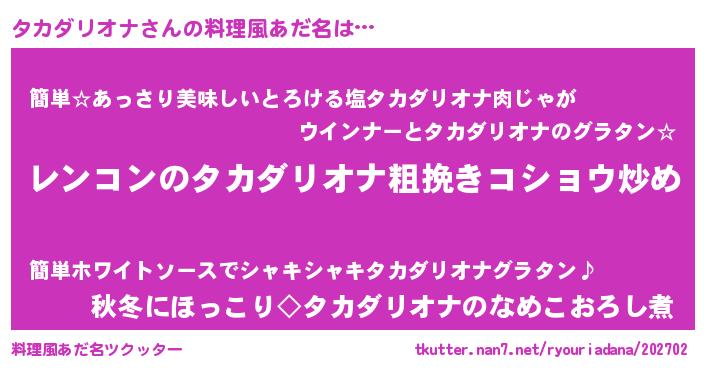 | 意味不明あだ名 | 『自称タカダリオナ』 |