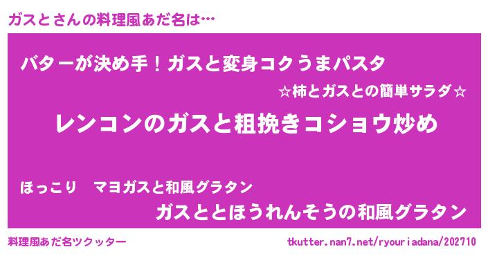 | 女子向けラノベタイトル風あだ名 | 『ガスとなんてお断りですっ。』 |