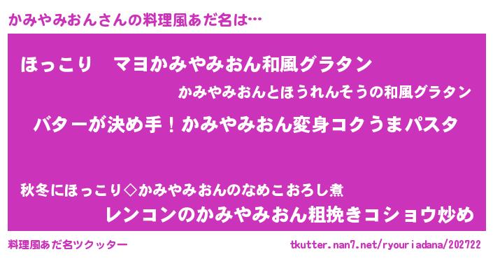 | 女子向けラノベタイトル風あだ名 | 『かみやみおん恋絵巻』 |