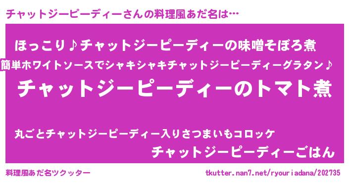 | 肩書あだ名 | 『チャットジーピーディー助手』 |