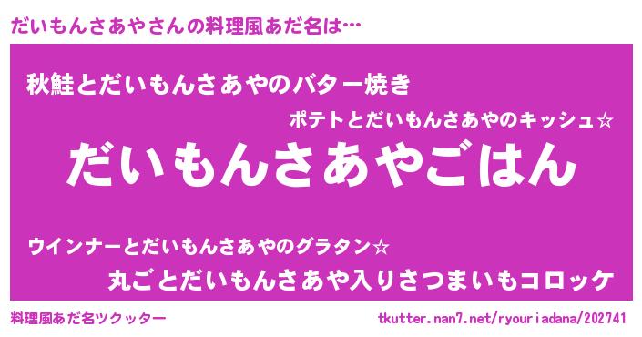 | ヘコむあだ名 | 『だいもんさあや(笑)』『だいを』 |