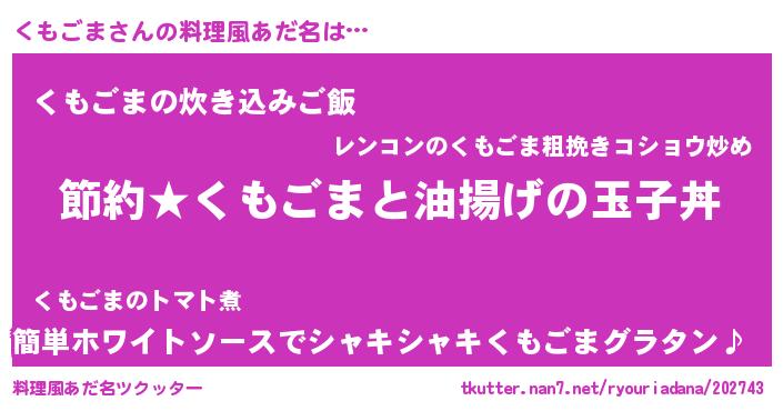 | ヒーロー風カッコイイあだ名 | 『スーパークモゴマ』『幻影騎士クモ』 |