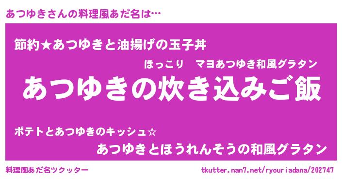 | 意味不明あだ名 | 『ペロリンあつゆき』『自称あつゆき』 |