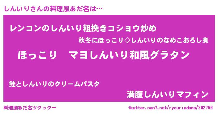 | 男性向けラノベタイトル風あだ名 | 『この素晴らしい世界にしんいりを!』 |