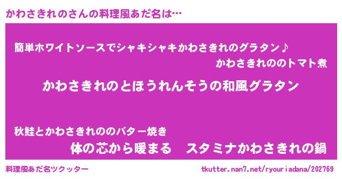 | ポケモン風あだ名 | 『カワキング』『ヒカワサキレノ』 |