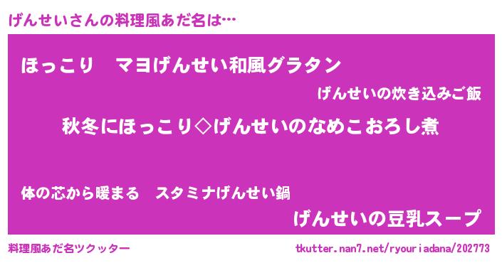 | ヘコむあだ名 | 『げんお』『豆乳』『げんもー』 |
