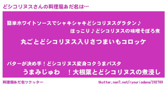 | 意味不明あだ名 | 『住所不定無職どシコリヌス(8歳)』 |