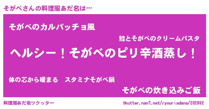 | 意味不明あだ名 | 『自称そがべ』『住所不定無職そがべ(89歳)』 |