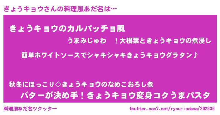 | 意味不明あだ名 | 『とにかく怪しいきょうキョウ』 |